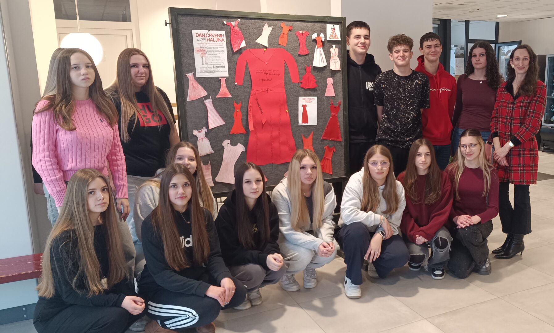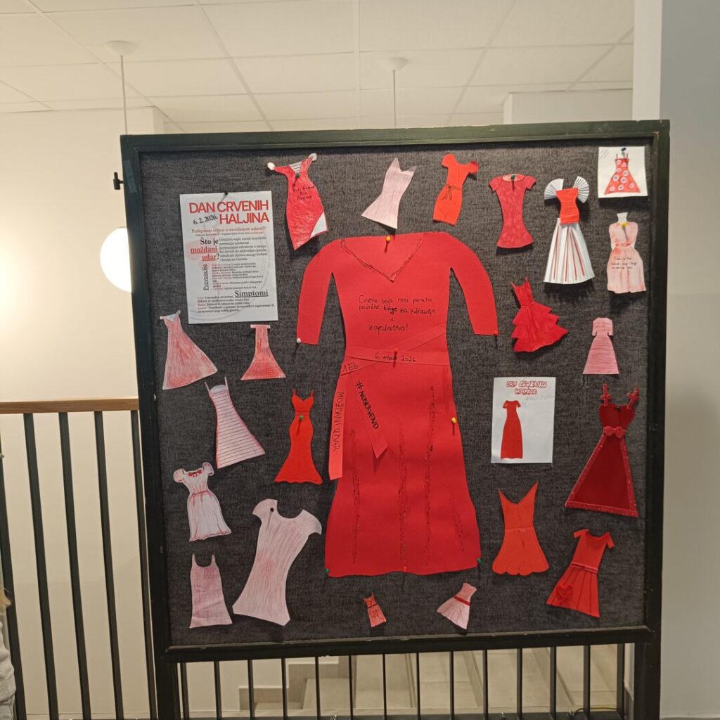 Učenici 1.Eb razreda danas su prigodno obilježili Dan crvenih haljina – dan borbe protiv moždanog udara kod žena. Kroz kreativne aktivnosti i izradu prigodnog letka te simboličnih crvenih haljina, učenici su osvijestili važnost prevencije, prepoznavanja simptoma i rizičnih čimbenika moždanog udara u žena.