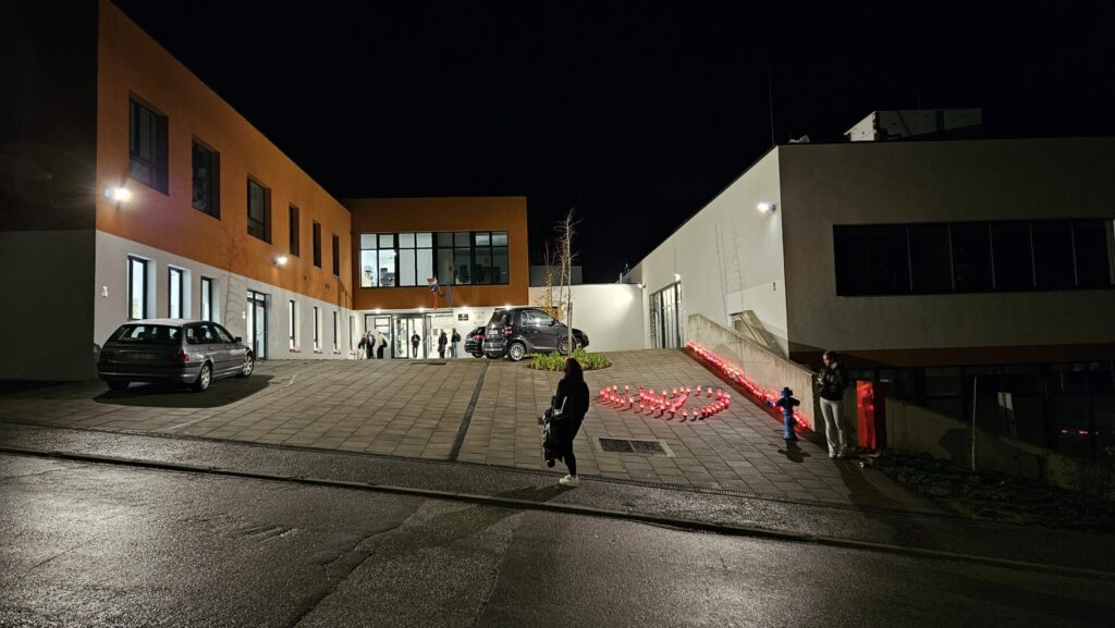 Učenici SŠ Zabok su sa svojim nastavnicima večeras ispred škole-Regionalnog centra obilježili 18. studeni, Dan sjećanja na žrtve Domovinskog rata i Dan sjećanja na žrtvu Vukovara i Škabrnje. Učenici su zapalili lampione u obliku srca i slova V (Vukovar), čime su simbolično iskazali pijetet gradu heroju Vukovaru, a učenici 4.Eb razreda Lukas i Tena su izveli prigodnu recitaciju.