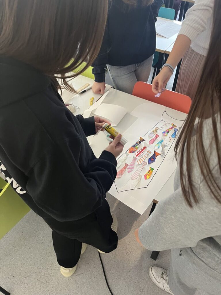 Učenici 1. TTD razreda na satu Poslovnog bontona u turizmu i ugostiteljstvu zajedno s nastavnicom psihologije Majom Kotarski istraživali su povijest odijevanja te su kao zadatak dobili izraditi svoju osobnu kravatu kroz koju su prikazali vlastitu osobnost, osjećaje i/ili interese. Zatim su na stražnjoj strani pisali zanimljivosti i sve to uklopili u veliku razrednu kravatu.