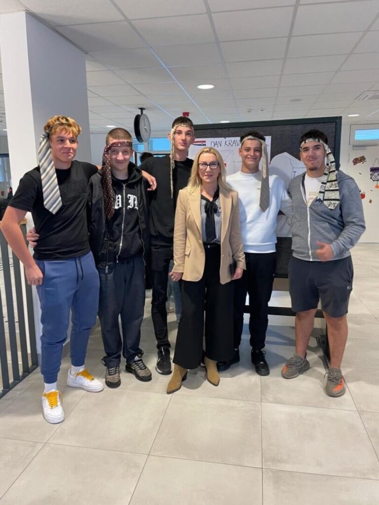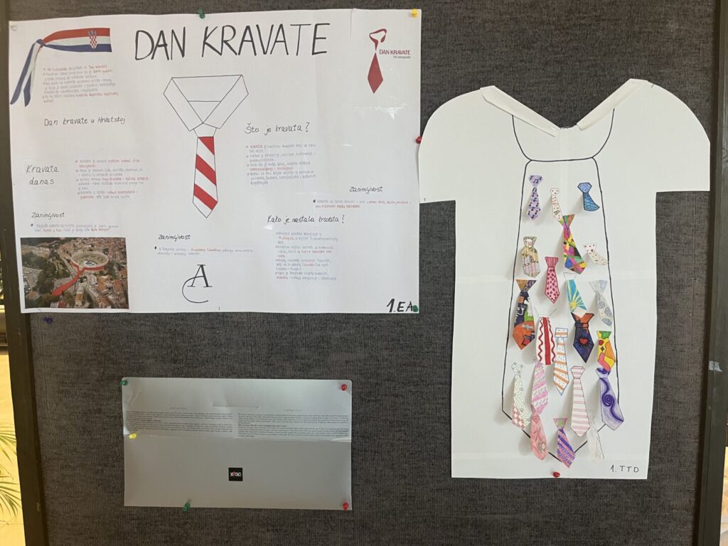 Budući da se 18. listopada obilježava Dan kravate, u našoj školi se toj temi posvetilo  u petak,17. listopada. Poznato je da su još u 17. stoljeću hrvatski vojnici prvi nosili kravatu koja je postala modni detalj i dio našeg nacionalnog identiteta. Učenici 1. Ea razreda zajedno s razrednicom Helenom Kralj izradili su plakat posvećen Danu kravate te se upoznali s modnim detaljem koji će u budućnosti postati dio njihovog profesionalnog identiteta.