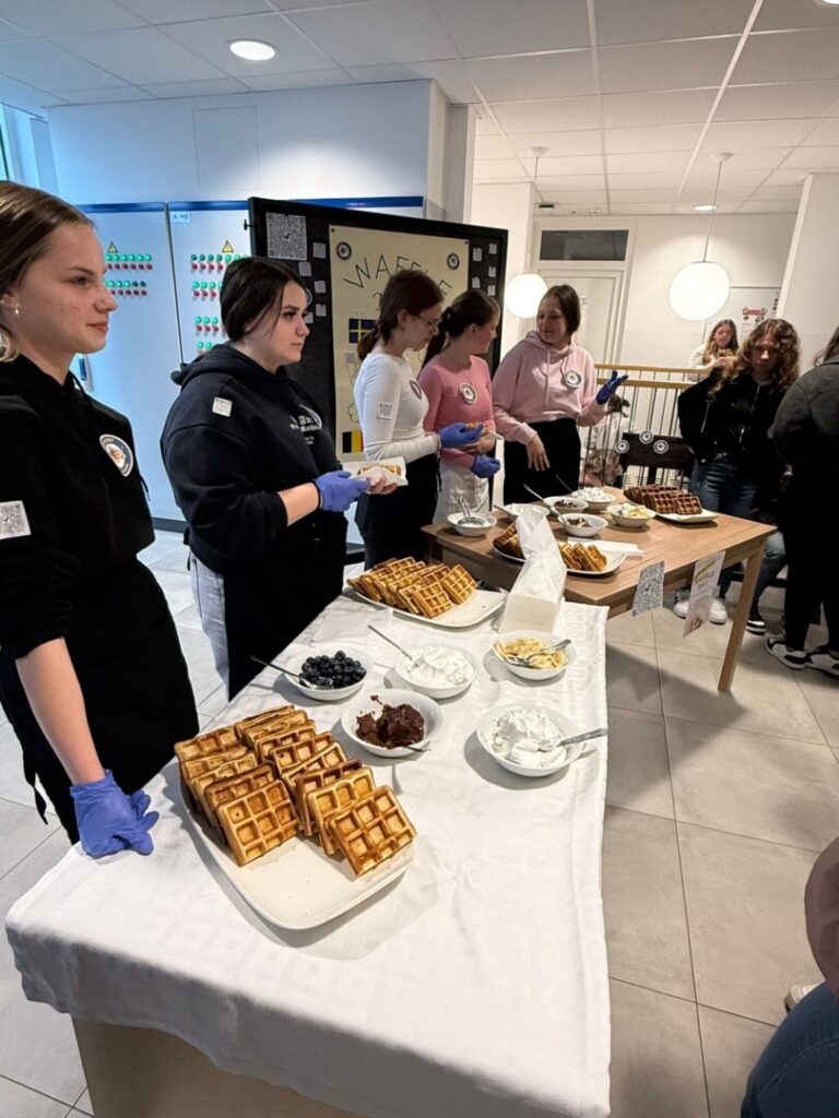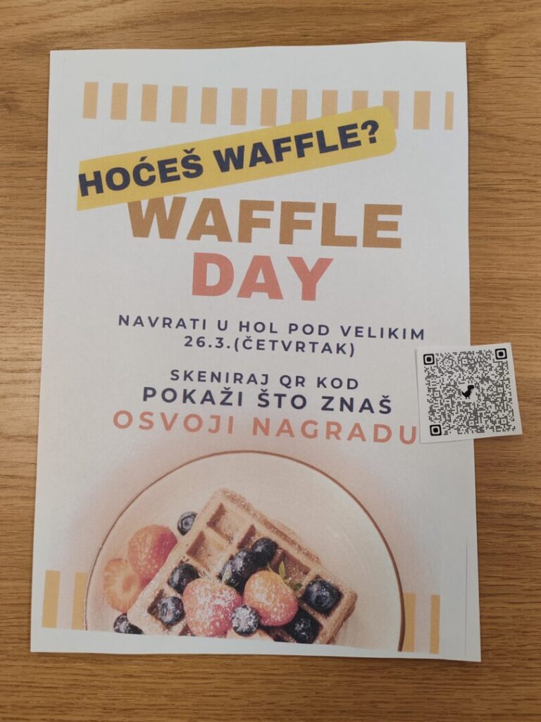 Učenice 1. TUA, 1. TUB i 4. K razreda, zajedno s nastavnicom Darijom Vrdoljak, izradile su edukativne i kreativne materijale: poster, pozivnice, bedževe i kviz o vaflima.
