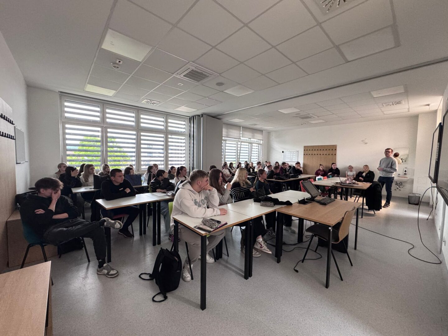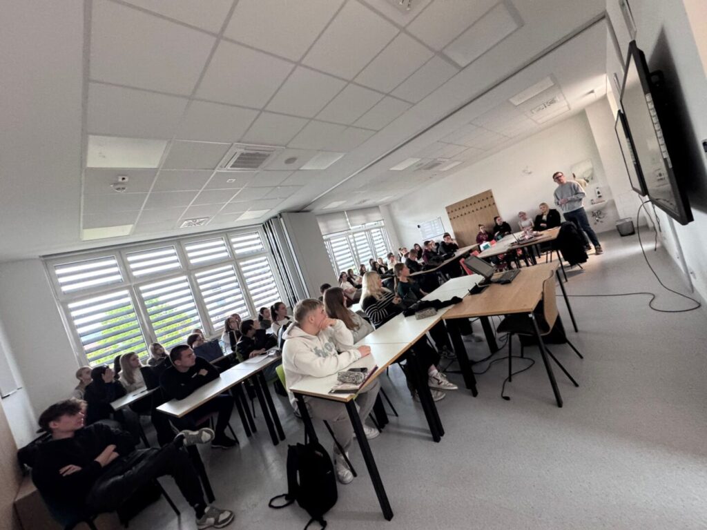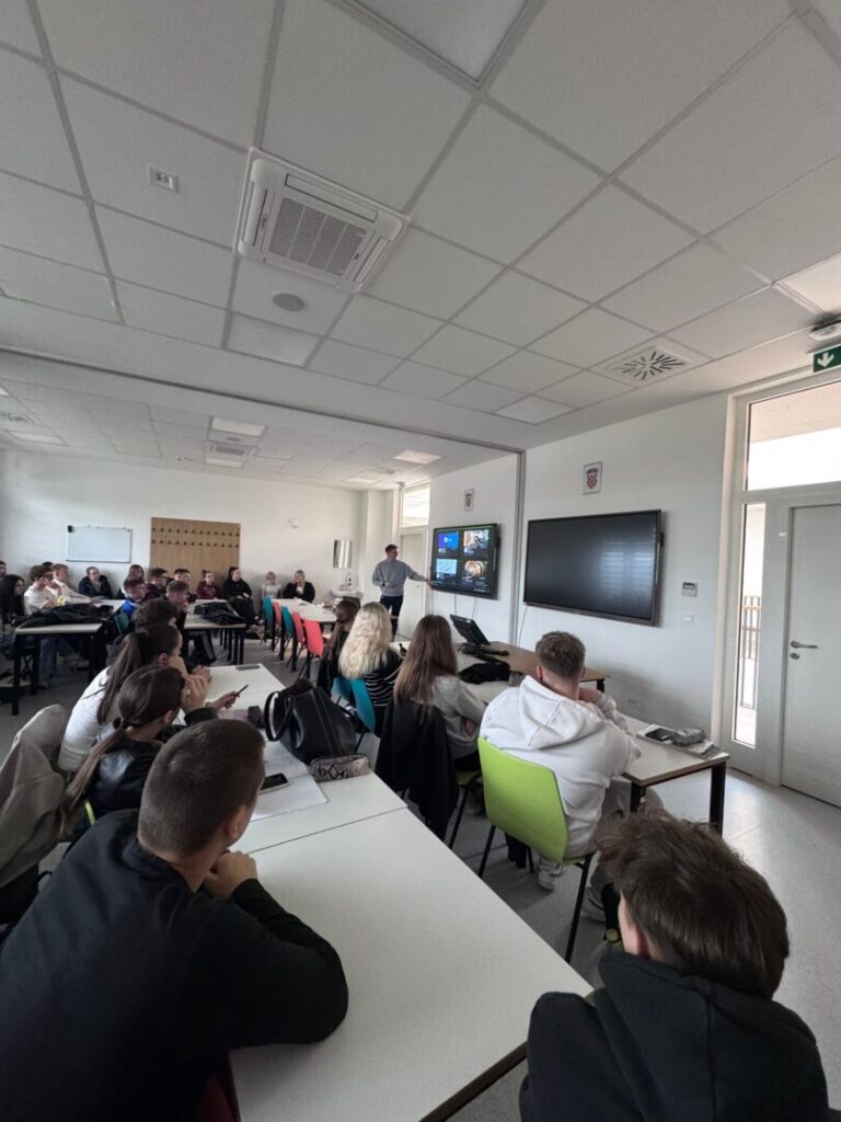 Poseban naglasak stavio je na storytelling, istaknuvši koliko je važno znati ispričati dobru priču kako bi poruka bila jasna, zanimljiva i upečatljiva. Učenici su s velikim interesom pratili predavanje te aktivno sudjelovali postavljajući brojna pitanja, na koja su dobili iscrpne i korisne odgovore.