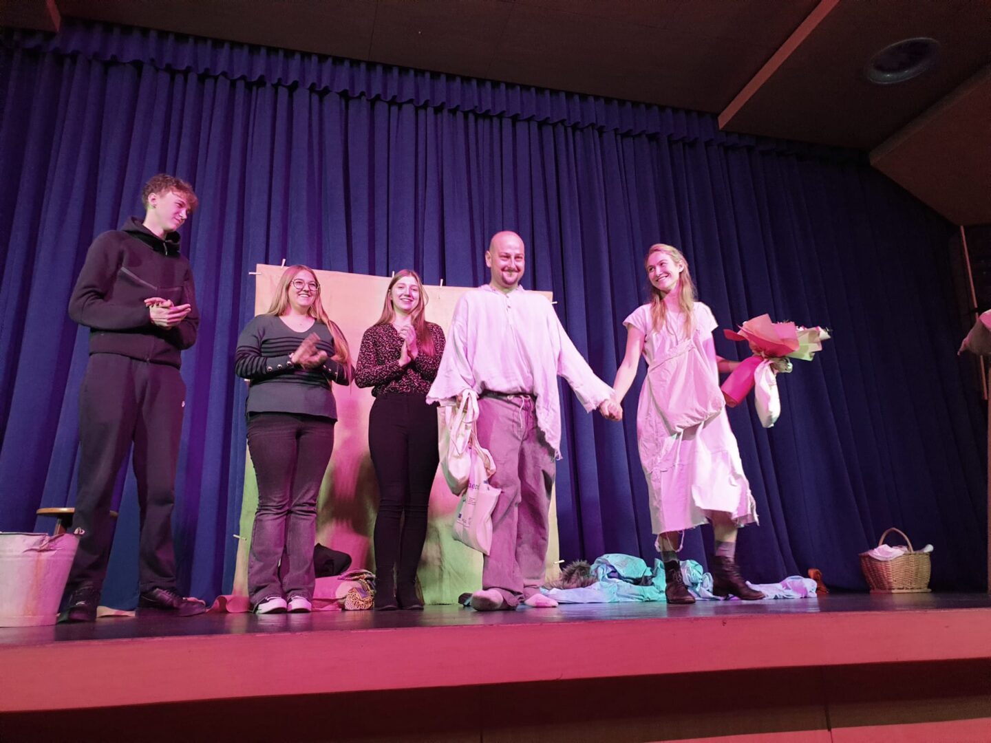 Naši učenici iz 3. HTT razreda, Marija, Marta i Karlo, glumcima su u znak zahvalnosti uručili poklone i cvijeće, čime su pokazali lijepu gestu poštovanja prema umjetnicima i kazališnoj umjetnosti.