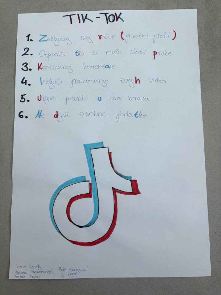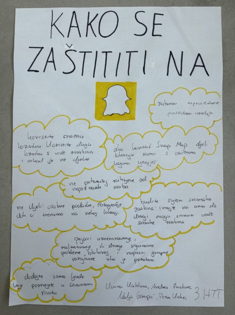Kroz provedene aktivnosti učenici su upoznati s rizicima koji vrebaju u online okruženju, nasilnim oblicima ponašanja s naglaskom na seksualno nasilje, kao i načinima kako se zaštititi od postojećih rizika i opasnosti. Za učenike 2.T, 2.U, 3.Ea, 3.K i 3.TU razreda održana je radionica pod nazivom „Nasilje ili flert“. Učenici 3.HTT razreda na radionici pod nazivom „Sigurno koračamo“ pokazali su svoju kreativnost izradom plakata sa savjetima o načinu zaštite na različitim društvenim mrežama. Provedene radionice dio su univerzalnog preventivnog programa Centra za sigurniji Internet.