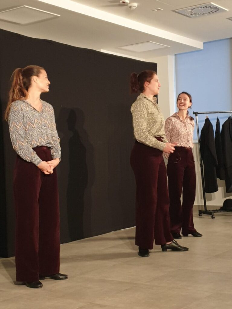 U ponedjeljak smo uživali u fantastičnoj predstavi „Pozdravi Pozdravima“, koju su izvele naše sjajne glumice Anja Đurinović, Marijana Matoković i Lidija Kraljić Zavišić iz Teatra Cirkus punkt. Predstava je svojevrsni remake i proslava 50. godišnjice kultnih Pozdrava iz 1974., a naše glumice su kroz ples, pjesmu, akrobatiku i snažnu glumu na scenu donijele duh teatra apsurda i Ionescovih drama.