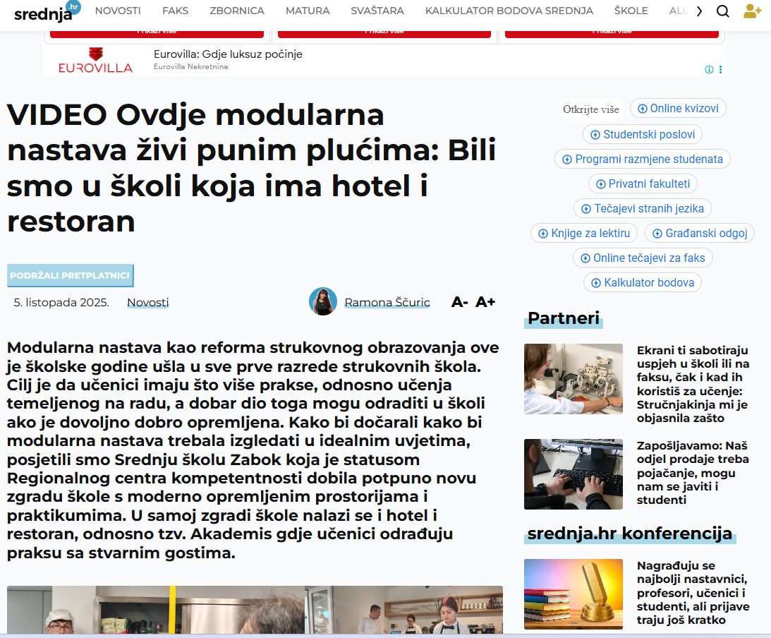 Portal Srednja.hr napisala je sljedeći video-članak: https://www.srednja.hr/novosti/video-ovdje-modularna-nastava-zivi-punim-plucima-bili-smo-u-skoli-koja-ima-hotel-i-restoran