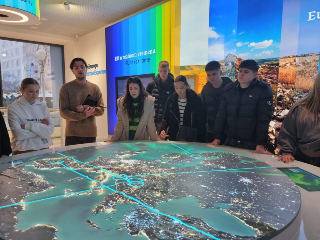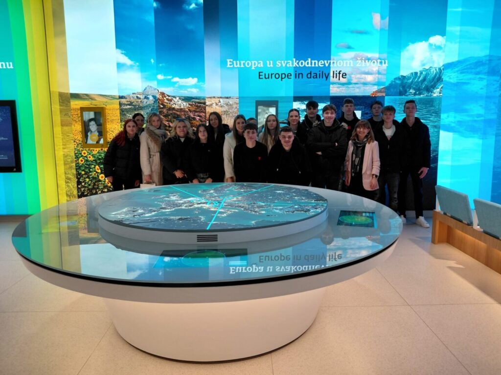 U multimedijskom centru Doživi Europu učenici su kroz film, kratko predavanje i bogate interaktivne sadržaje učili o Europskoj uniji. Saznali su kako funkcioniraju europske institucije, kako se i gdje donose odluke, te koje se mogućnosti pružaju mladima u Europskoj uniji. Slušali su o prednostima uključivanja u Erasmus programe, povlasticama putovanja željeznicom kroz Europu i o ostalim mogućnostima za mlade koje im pruža Europa. Učenicima su bile zanimljive informacije o tome u što se sve oni mogu uključiti kao odgovorni građani Europe i kojim zastupnicima u Europskom parlamentu mogu postaviti pitanja vezana uz životne probleme građana Europe. Na kraju smo razgledali uži centar Zagreba, analizirali urbanu strukturu grada i aktualnu turističku ponudu.