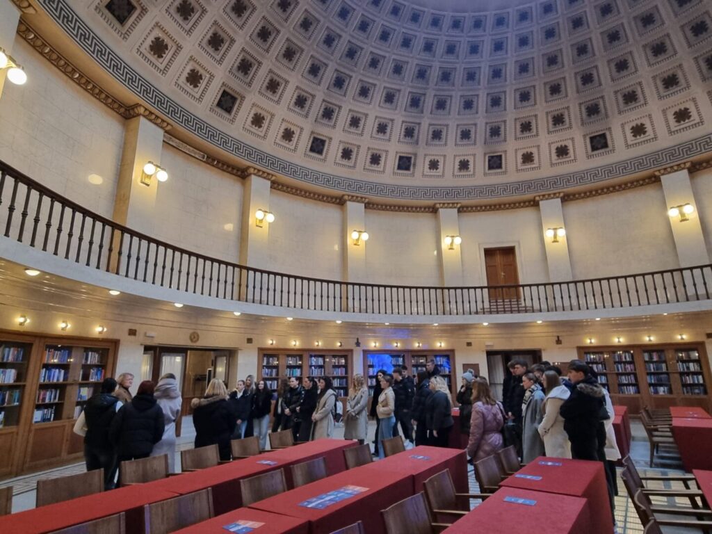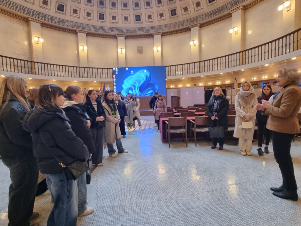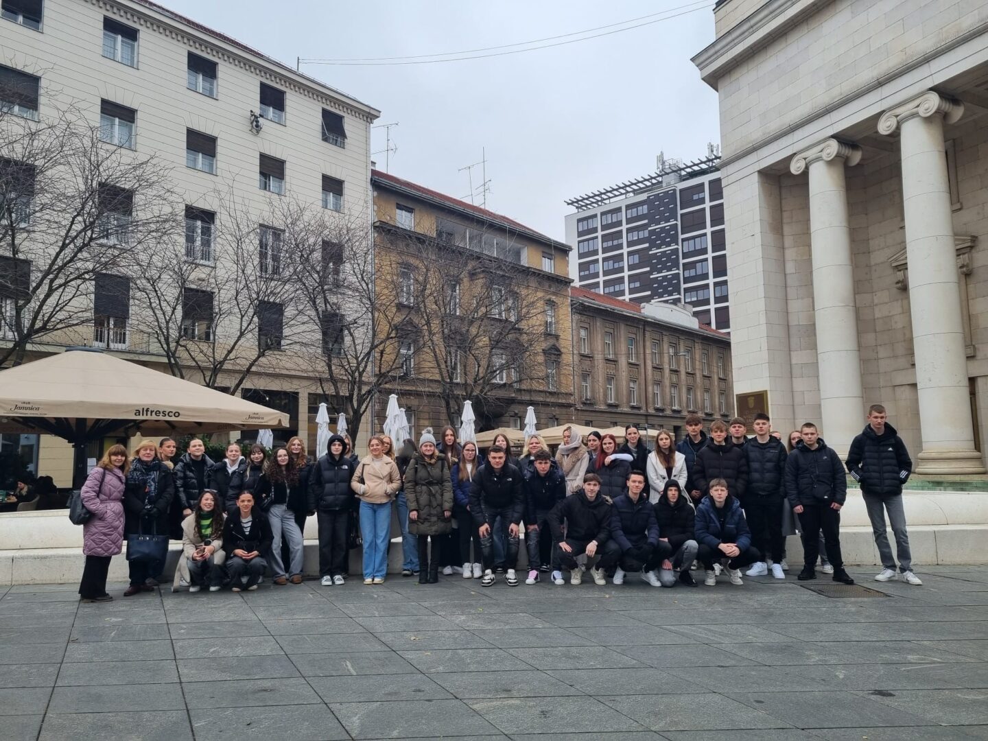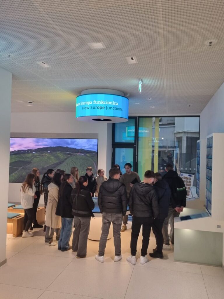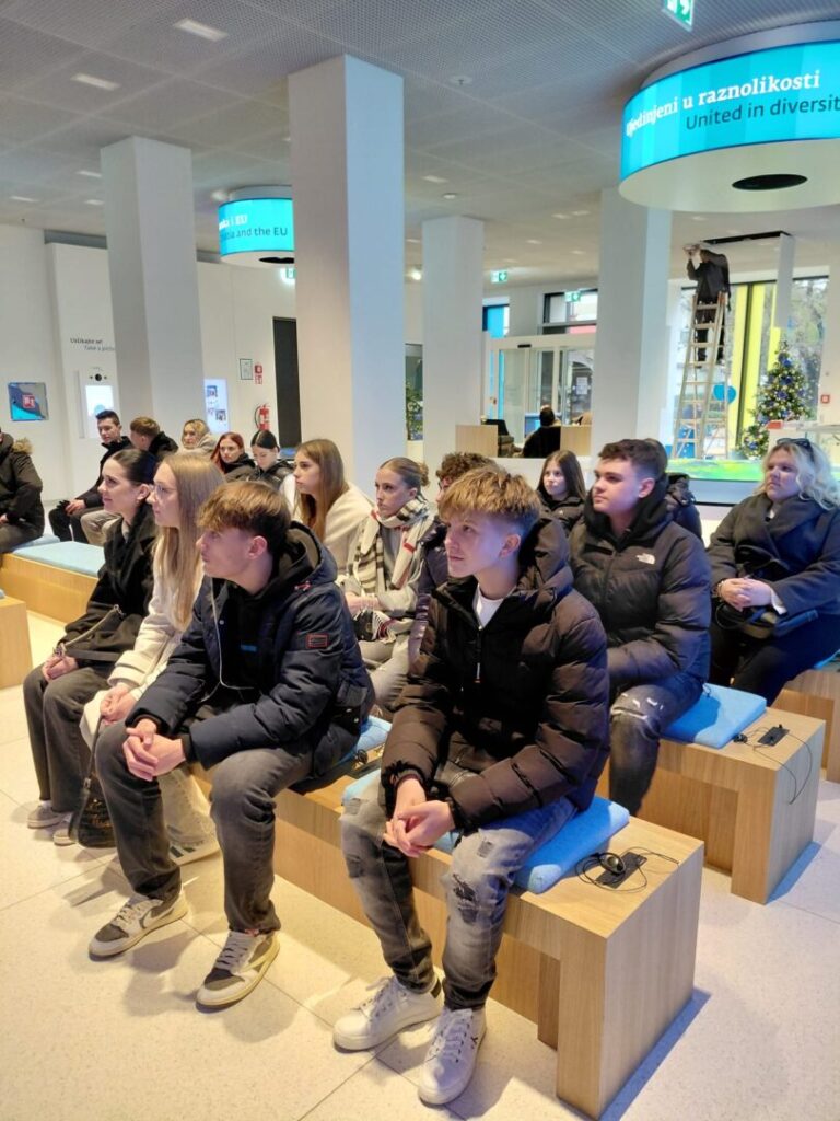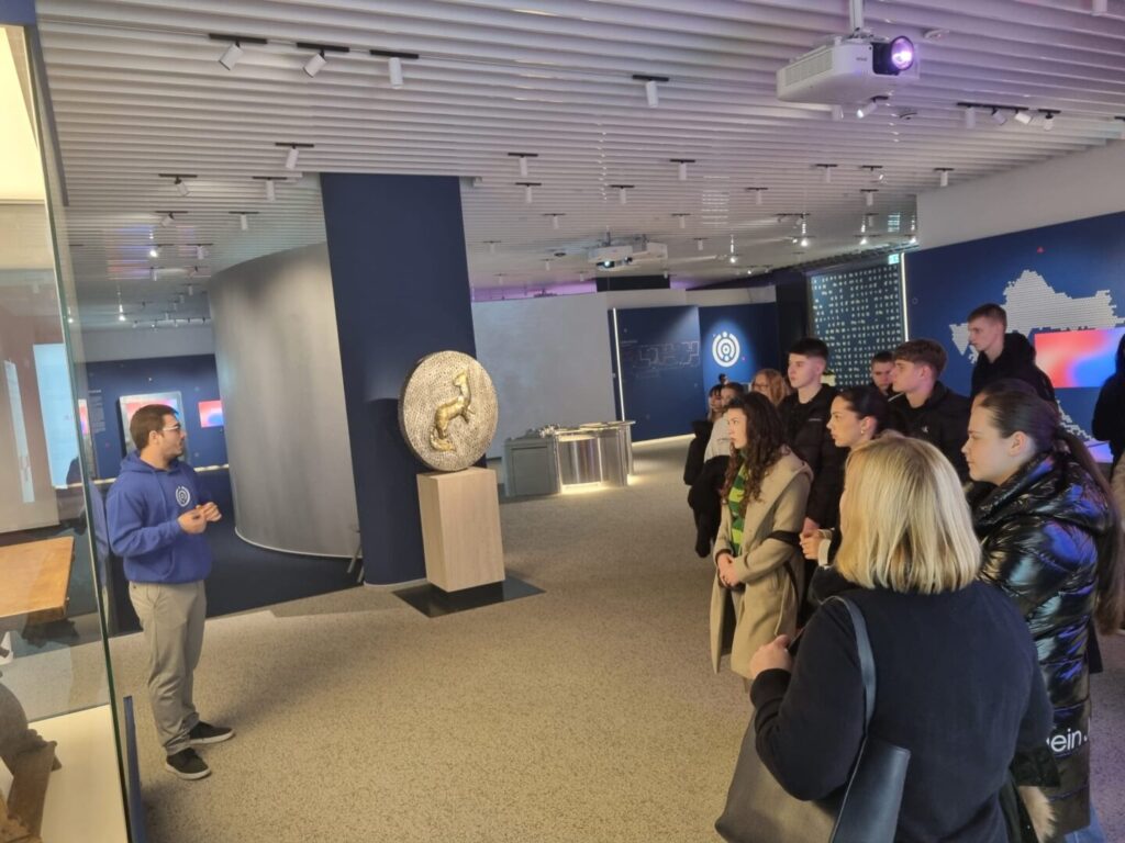 Učenici 2. Ea i 2. Eb, njihove razrednice, Karolina Ciglar i Brankica Cvetko, i voditeljica terenske nastave, Davorka Gavranić, posjetili su četvrtak 4. 12. 2025. Hrvatsku narodu banku, Muzej novca – Moneterru i multimedijski centar Doživi Europu u Zagrebu.