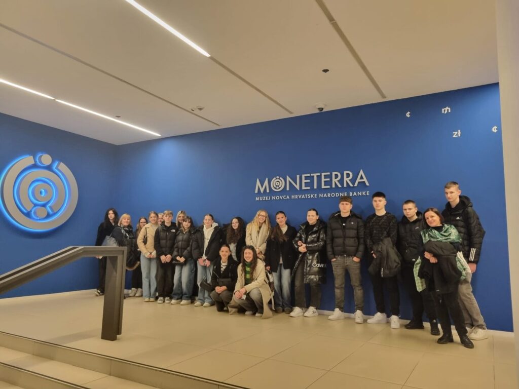 U Muzeju novca Hrvatske narodne banke – Moneterri, učenici su uz stručno vodstvo odslušali predavanje o povijesti i budućnosti novca, a mogli su odigrati interaktivne kvizove, postavljati pitanja i putem interaktivnih dijelova postava obogatiti svoje znanje o novcu.