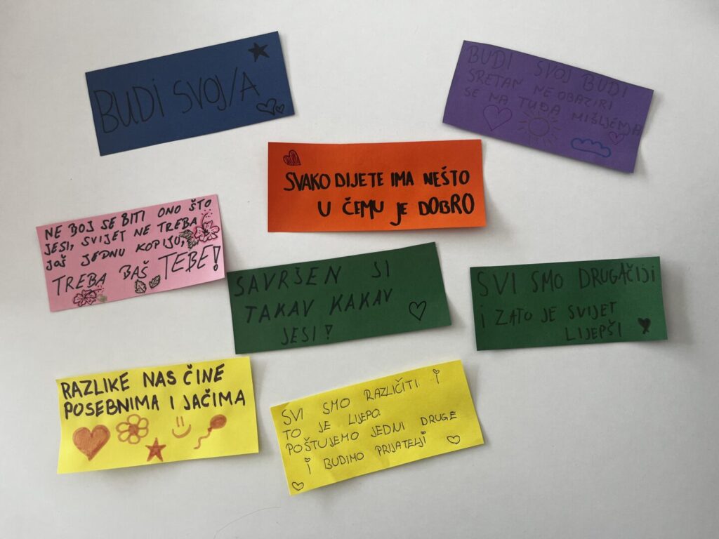 U prilogu možete vidjeti i radove učenika 1.TTD razreda koji su simbolično izradili šarene čarape iz kartona u koje su ubacili papiriće s porukama podrške i potpore kako bi uljepšali dan onima koji je teško. Zajednička misao svih učenika je da nas upravo naše različitosti čine posebnima i jedinstvenima.