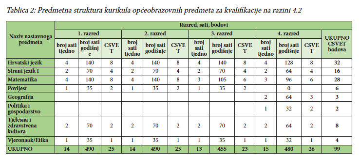 Kurikul općeobrazovnih predmeta za srednje strukovne škole na razinama 4.1. i 4.2.